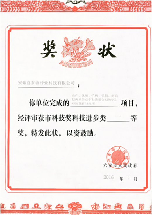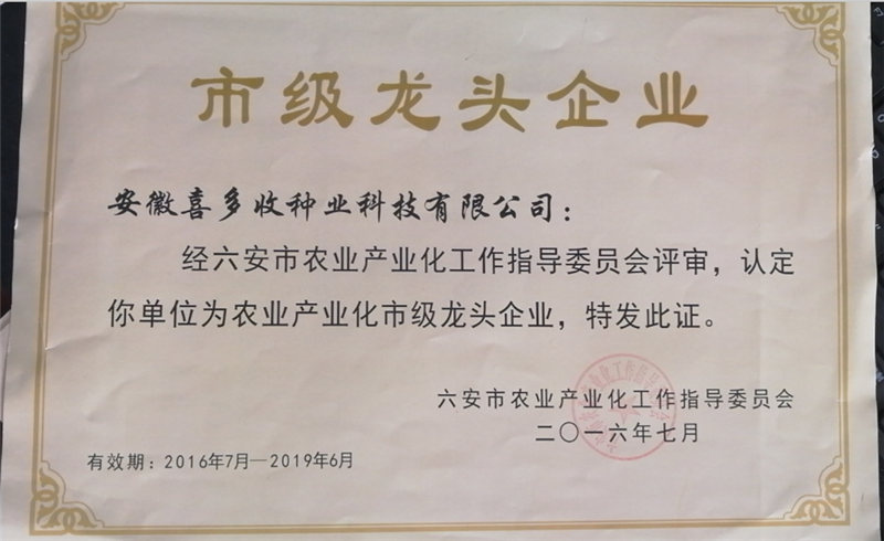| 市級龍頭企業(yè) | 2016年 |