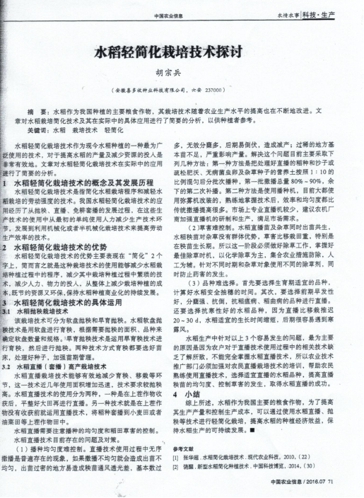 “水稻輕簡(jiǎn)化栽培技術(shù)探討”在《中國(guó)農(nóng)業(yè)信息》2016年第7期公開(kāi)發(fā)表
