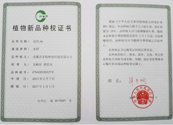 中浙優(yōu)608植物新品種權(quán)證書