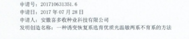 發(fā)明專利《一種誘變恢復(fù)系選育優(yōu)質(zhì)光溫敏兩系不育系的方法》專利申請(qǐng)受理通知書