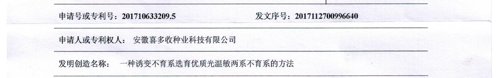 發(fā)明專利《一種誘變不育系選育優(yōu)質(zhì)光溫敏兩系不育系的方法》實(shí)審?fù)ㄖ獣?shū)