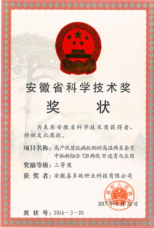 | 高新企業(yè)技術(shù)培育證書 | 2017年 | 安徽省科學技術(shù)廳 |