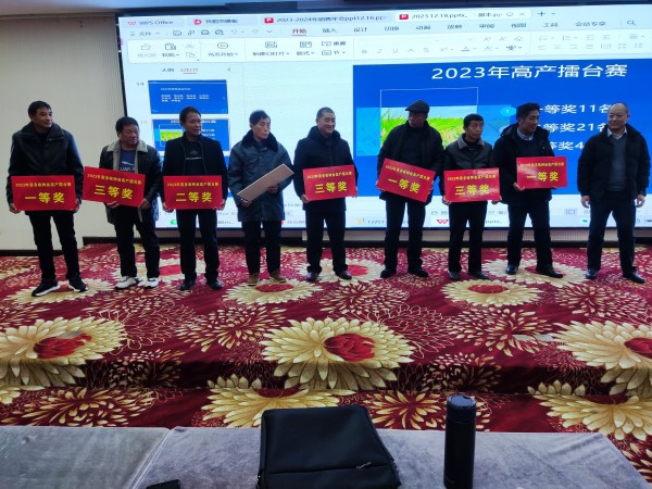 會(huì)議第二項(xiàng)由安徽喜多收種業(yè)的副總經(jīng)理趙見(jiàn)朝先生對(duì)公司2024年度水稻銷(xiāo)售優(yōu)惠政策進(jìn)行了詳細(xì)的解讀,實(shí)現(xiàn)共贏!同時(shí)公司副總經(jīng)理趙總公布了2023年優(yōu)秀合作伙伴及高產(chǎn)擂臺(tái)賽名單,公司兩位老總為他們頒獎(jiǎng)。