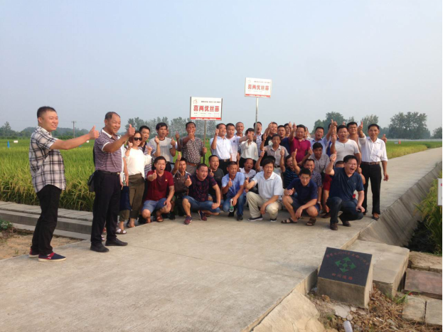 2017.8.22湖北省公安縣楊長斌率領(lǐng)當(dāng)?shù)胤N業(yè)界精英50余人專程來到安徽喜多收種業(yè)試驗(yàn)示范基地,實(shí)地考察“深兩優(yōu)571、C兩優(yōu)198、喜兩優(yōu)絲苗、巧兩優(yōu)超占等水稻新品種。積極主動與安徽喜多收種業(yè)科有限公司合作加快水稻新品種科研成果轉(zhuǎn)化和推廣種植。