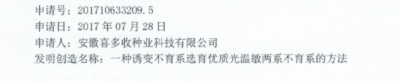 發(fā)明專利《一種誘變不育系選育優(yōu)質(zhì)光溫敏兩系不育系的方法》專利申請受理通知書