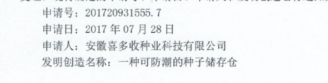 實(shí)用新型專利《一種可防潮的種子儲(chǔ)存?zhèn)}》專利申請受理通知書